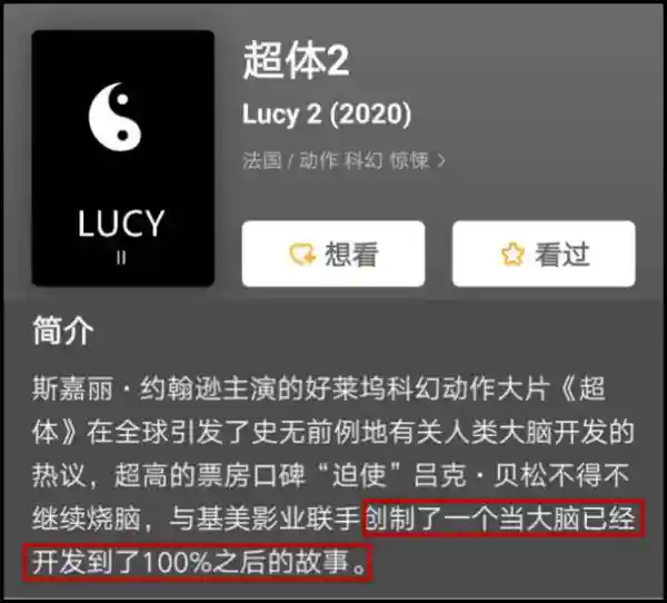 对此,网友也曾展开热烈讨论,有人说:“《超体2》肯定是两个超级智能全球对打,然后俗套的剧情开始,懂得爱的寡姐用爱化解了一切邪恶,战胜了罪恶。”还有人说:“你们根本就没看懂超体,超体结尾,露西已经是全知全能凌驾一切的存在了,所以《超体2》是讲她控制了超体的导演和编剧的思维,让他们拍续集的事情。”而豆瓣页面是这样介绍的: