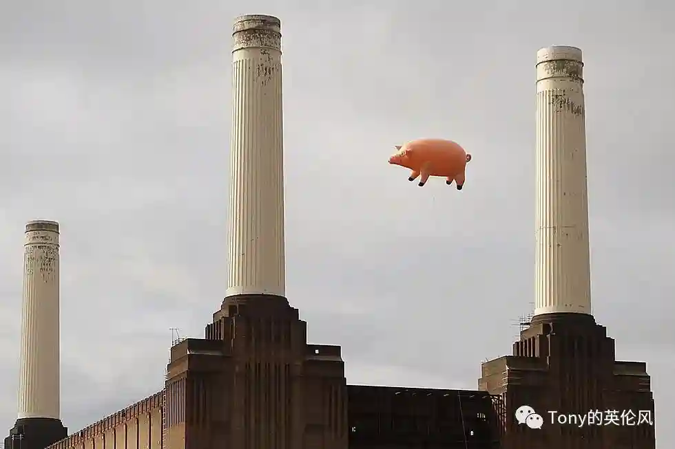 令人意想不到的是,这座发电站曾经出现在乐队thePinkFloyd的专辑封面中,也就是图下这只在发电站漂浮的猪——