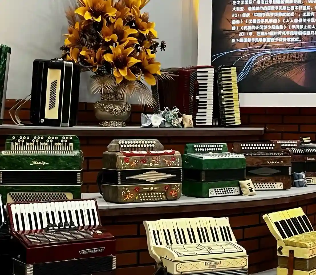寒假我来到了手风琴博物馆,在这500平方米的展厅里陈列着中国、俄罗斯、德国、意大利等10个国家的1087架手风琴。其中最古老的一架纯手工制作手风琴,已经有一百多年的历史。这些手风琴虽然已有些“年龄”,但它们被精心保护和修复,现在还能奏响音乐。欣赏这些手风琴,看着手风琴精致的花纹、镂空的雕刻、金属质感、配色等,仿佛与音乐、与艺术在“隔空对话”。