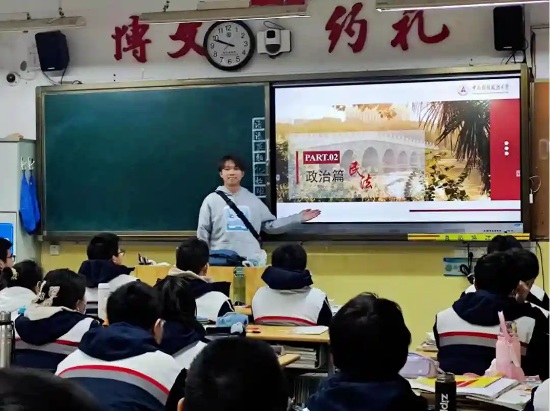 法治宣传教育是全面依法治国、建设社会主义法治国家的一项基础性长期性工程,所以在寒假我们小分队走进武汉市第十四中学进行普法宣传。团队成员从法律的历史与学说、民法典的基本原则和生活中的法律三个方面展开宣讲。我们希望以通俗易懂的语言和丰富有趣的形式宣传法律知识,提升中学生们的法治意识,为法治中国建设贡献力量。
