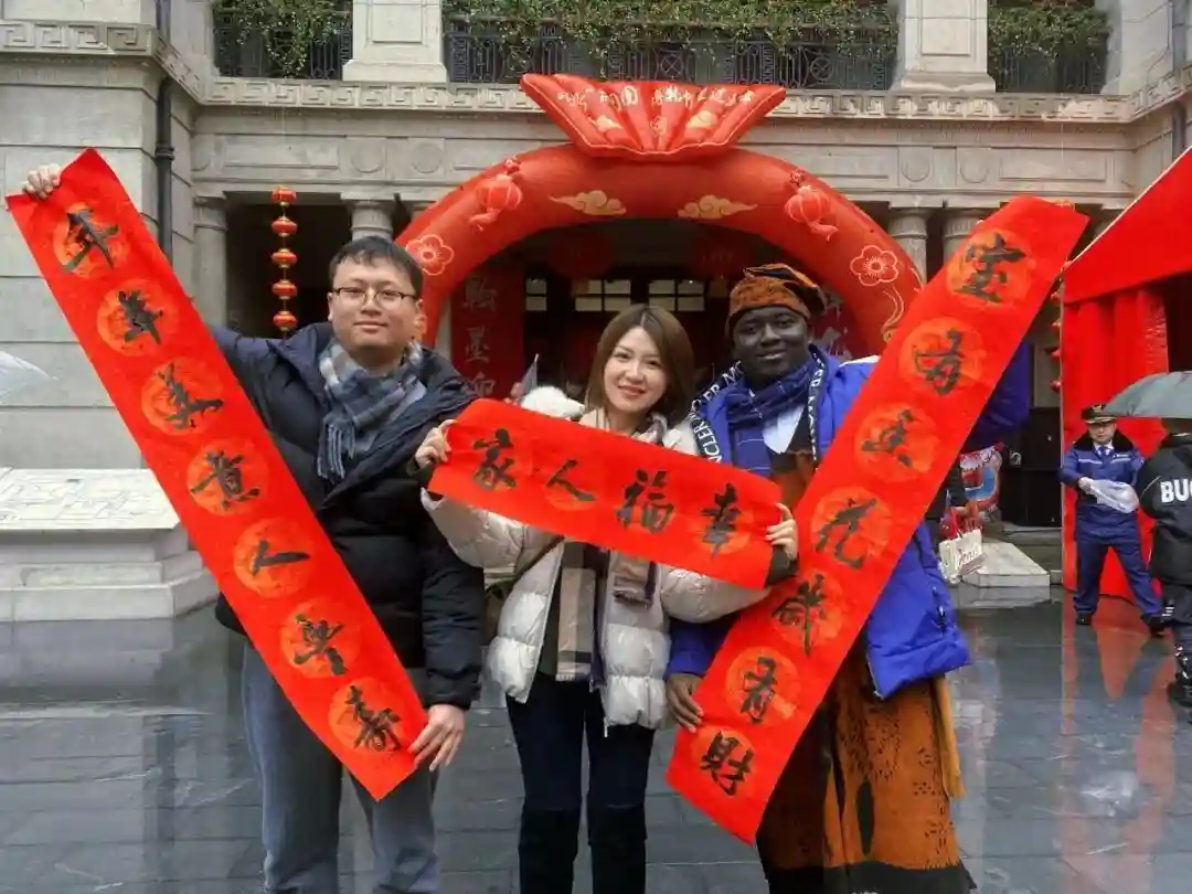 在小年当天,我和马克思主义学院另外一名博士余帅均、金融学院博士佐佑(几内亚共和国留学生)受邀来到了武汉中共中央机关旧址纪念馆参加新春系列活动——非遗游园会。名家写春联、名角献曲艺、名师剪窗花、绘糖画,我们沉浸式地体验了许多充满了年味的传统文化活动。在重访红色革命旧址的同时,我们还重温了儿时的“年味”,觉得厚重又温馨。除此之外,这也是一次向留学生同学介绍中国春节传统文化的好机会,在分享的过程中,留学生同学也更加喜欢中国,我也非常开心!
