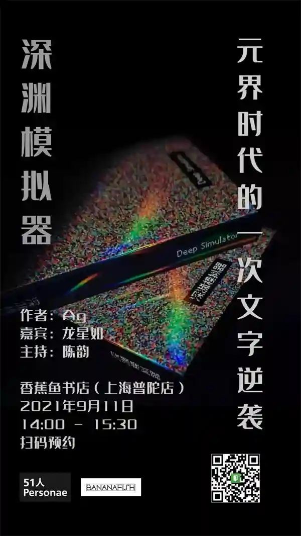 当元界(metaverse)时代越来越强调时时在线、技术体验增强、线上经济化和集体虚拟化时,《深渊模拟器》,作为一个基于文学化体验的metagame,以更进一步逆向的方式化现了它的肉身——一本有着古早赛博设计感的纸质书。本次讲座,龙星如将与本书作者Ag展开对谈,对这种逆袭展开讨论,以及作家/艺术家如何越过技术划定的工作模式,一同内化并拓展成超越性的创作经验与语言。