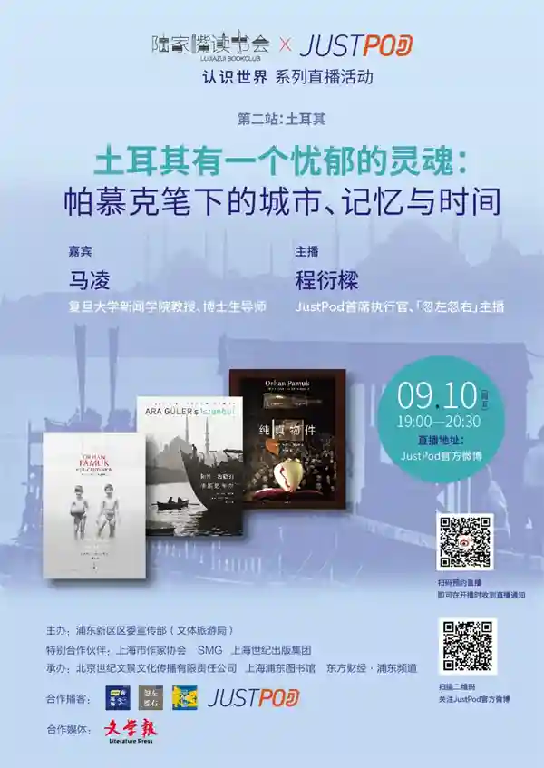 在《伊斯坦布尔》中,诺贝尔文学奖得主帕慕克用“呼愁”来形容这座城市的忧伤感觉和孤独氛围,“呼愁”无处不在,观看城市的一幕幕景象能唤起个体的回忆,触发内心的失落,同时,它又赋予人们的命运某种尊严,让他们选择以乐观而骄傲的态度拥抱失败。“物的力量在于它们内在积淀的回忆,也在于我们想象和记忆的变迁。”「认识世界」系列活动第二站,复旦大学新闻学院教授马凌老师和JustPod首席执行官、“忽左忽右”主播程衍樑将带领读者徜徉帕慕克的文学世界,寻访伊斯坦布尔的记忆与时间。