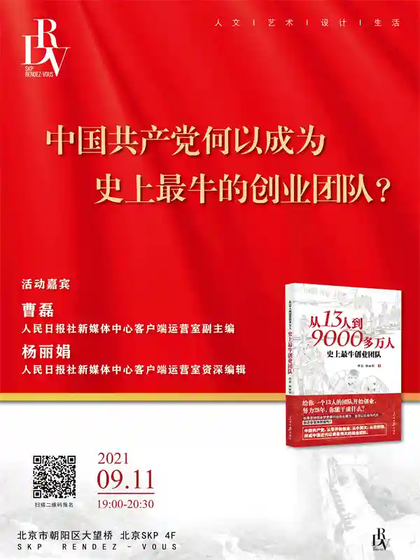 9月11日晚,我们邀请了《从13人到9000多万人:史上最牛创业团队》一书两位作者,社新媒体中心客户端运营室的曹磊、杨丽娟,做客北京SKP,聊聊中国共产党的创业故事,以及时值建党百年,新媒体又是如何讲述党史故事的。