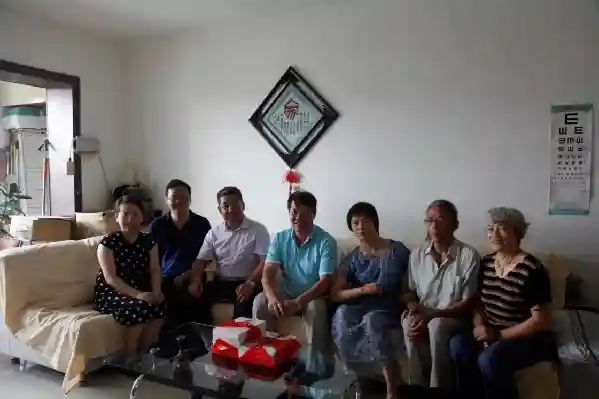 全国翻译专业资格考试办公室副主任兼中国外文局翻译专业资格考评中心代主任王继雨(左三)、考试办秘书长江平(左二)、新疆大学外国语学院谢旭升教授(左四)与胡婧家人合影