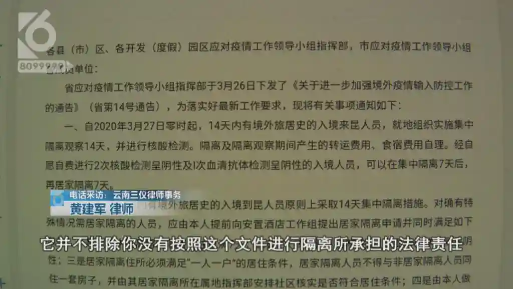 律师黄建军:"它并不排除你没有按照这个文件进行隔离所承担的法律责任,甚至是我们说的刑事责任。"