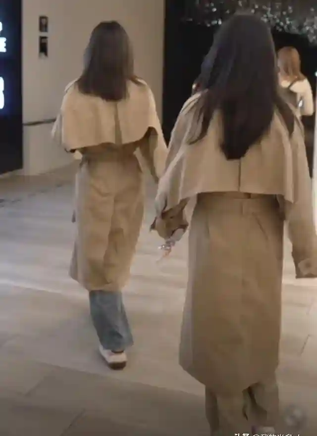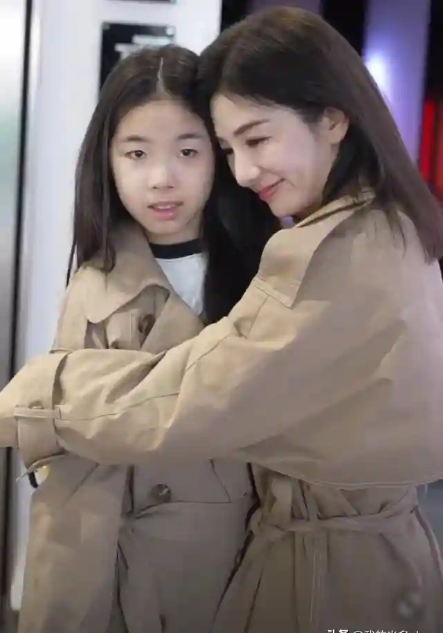 11岁的黄芊玲身高已接近165厘米,穿着同款风衣的母女俩站在一起,竟让人分不清谁是谁。