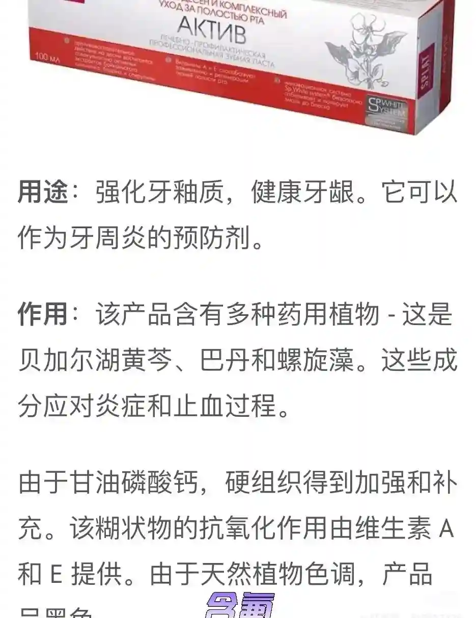 白俄最出名的牙膏。这个牌子的牙膏品种实在是太多了。也称为白俄版的云南白药。牙龈容易出血的同学可以用这个。绿色的这款我觉得味道很清新。而且价格还很便宜,8元左右。