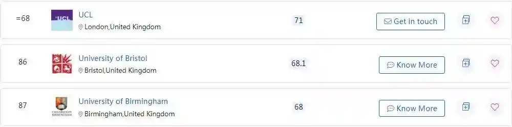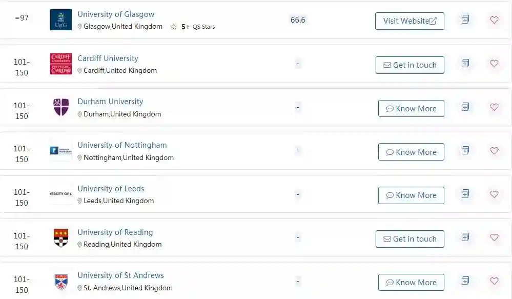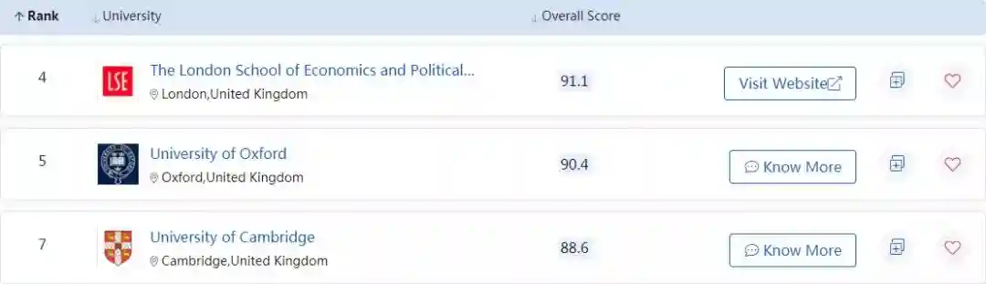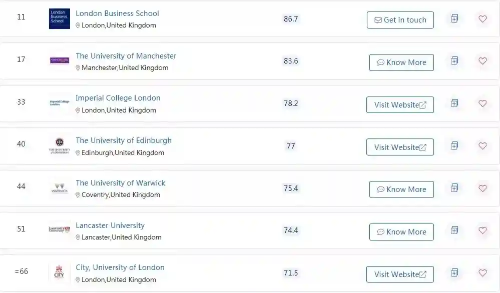 在QS世界大学会计专业排名中,英国的高校也表现不俗,下面馆长列出了QS专业排名前150的英国大学: