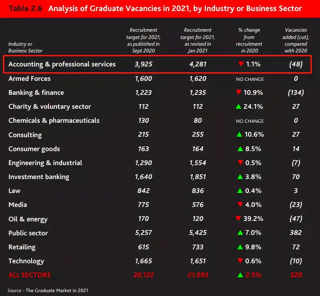 根据发布数据来看,2021年的会计专业服务领域预计提供4281个空缺职位,和去年相对持平(下降1.1%)。