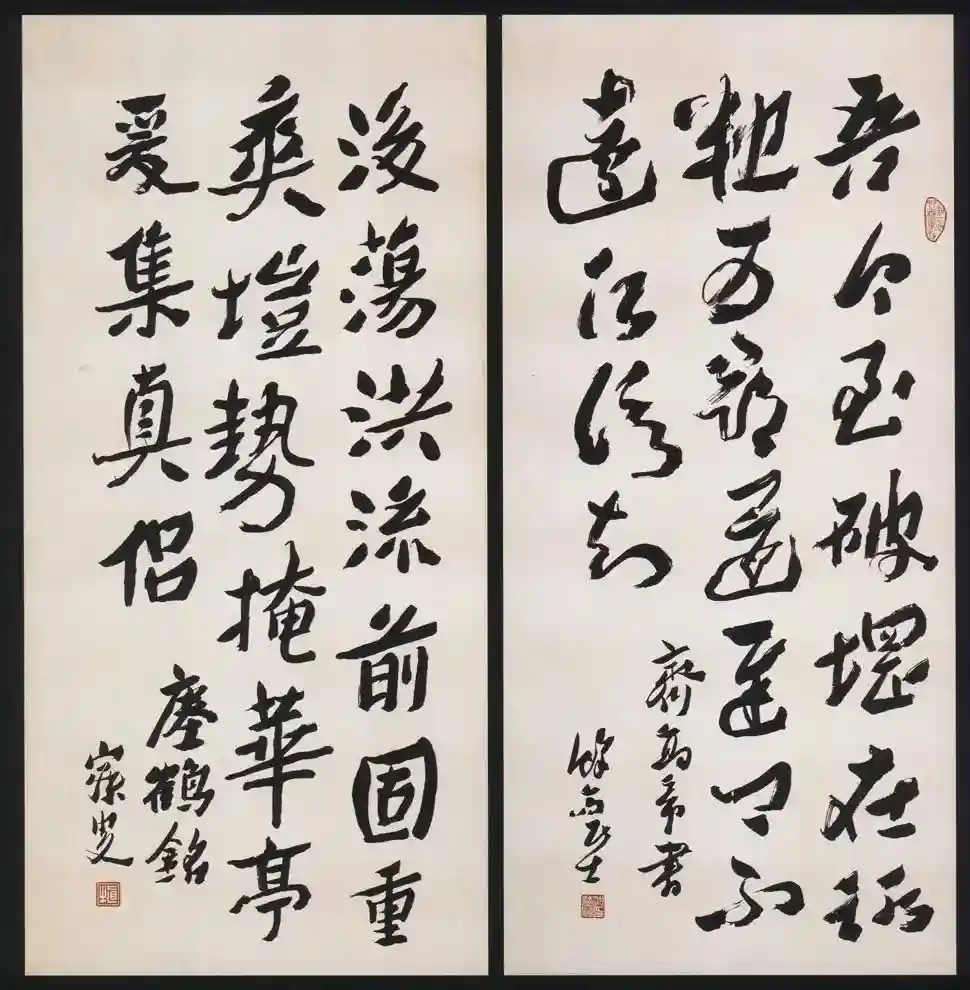 沈曾植《行书竹炉雨笠七言联》纸本行书