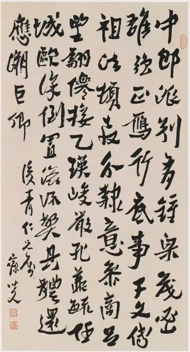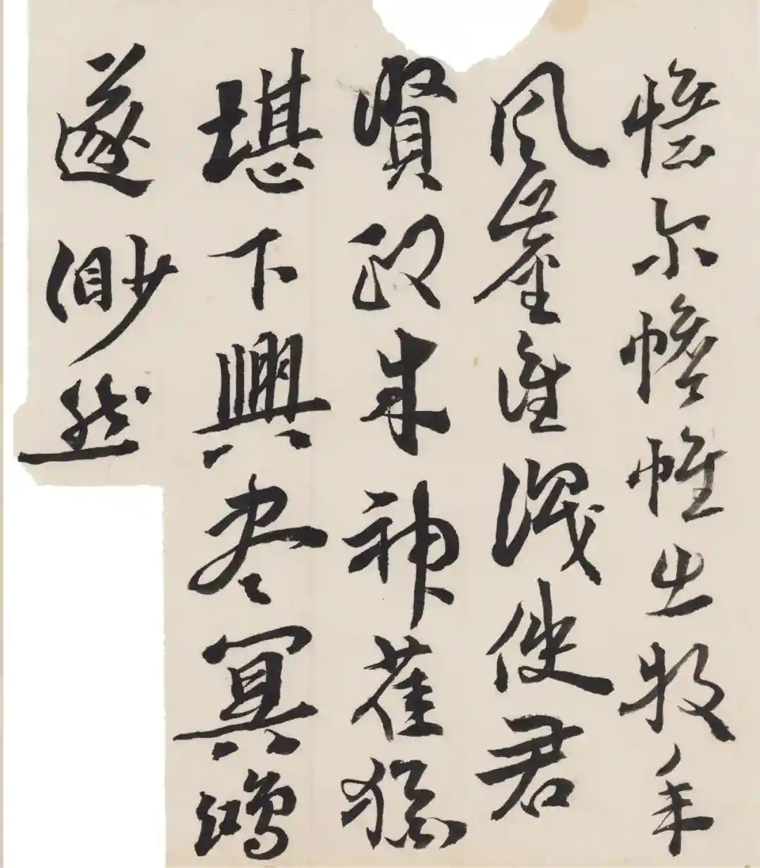 沈曾植之所以能独树一帜,除了上述的种种鲜明的见解外,还具有一颈勇猛精进的心。他在书学上没有像包世臣那样钻牛角尖,而是主张古今融合,南北相济,以期相生相发的境界。在实践上,他非常大胆地运用“抽锋”、“卧笔”之类的手段,如果用正统的眼光来看,觉得有些偏胜;如果用新理异态的效果来看,恰到好处。