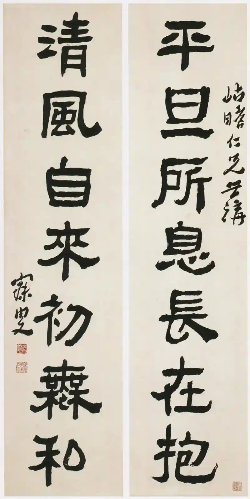 沈曾植《隶书平旦清风七言联》纸本隶书