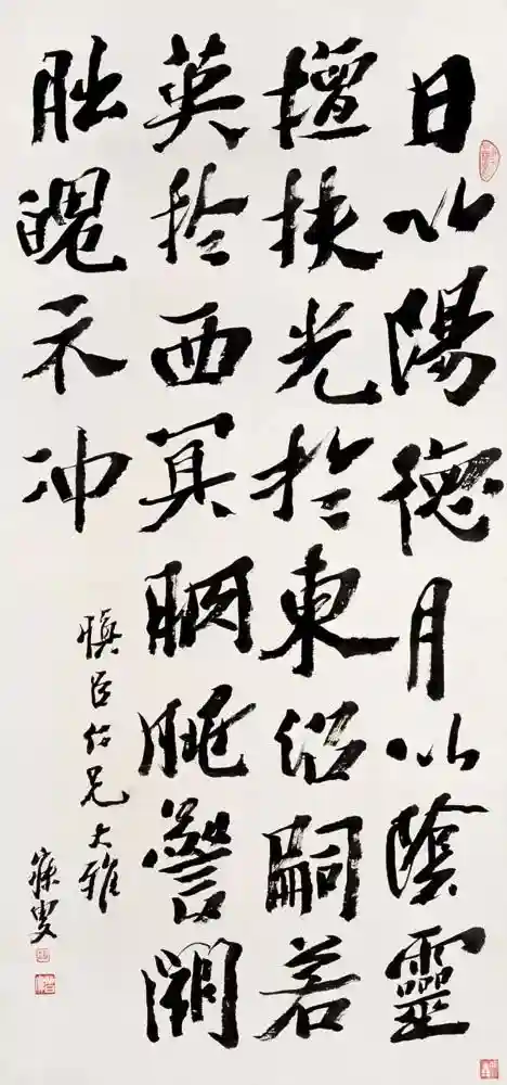 晚清整个社会都在求变求新以自强。沈曾植书法以占为变.以古为新,翻覆盘转,新意十足。历史上,米芾、赵左頫是以古为新的成功实践者。沈曾植在给门生谢凤孙的信中曾指出:“吾尝以阁下善学古人为不可及:今忽曰:以临古为大病,此涣何耶?来屏有使转而无点画,即使转办单薄寡昧,如此便是自寻贱落矣,如何?米元章终身不离临摹,褚公亦然,上至庚亮、谢安石,办有拟法。鄙人临纸,一字无来历,便觉杌不安也。”但沈曾植的复古意识与米芾、赵孟頫、董其昌等人比较起来,还是很有特点。米、赵、董复古以正统自勉,非二王不学,以取晋药为主,非“相杂文生”。所以,他们的书学思想中很难见到诸如沈曾植所主张的“异体同势”、“古今条形”、“中画圆满”、“分画中虚”这些内容。孙过庭所谓“古质而今研”,沈即是研了,更注重书法形式上的变化,注重参势而姿生的结果。