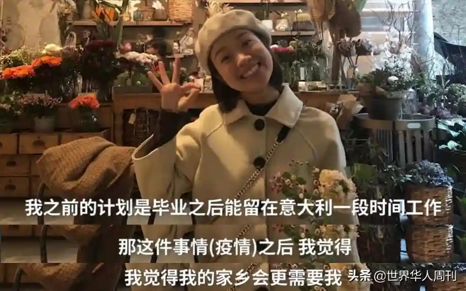 意大利佛罗伦萨大学的武汉留学生小李在接受采访时表示:之前的计划是毕业之后能留在意大利工作一段时间,但这次疫情之后,她觉得家乡会更需要她。