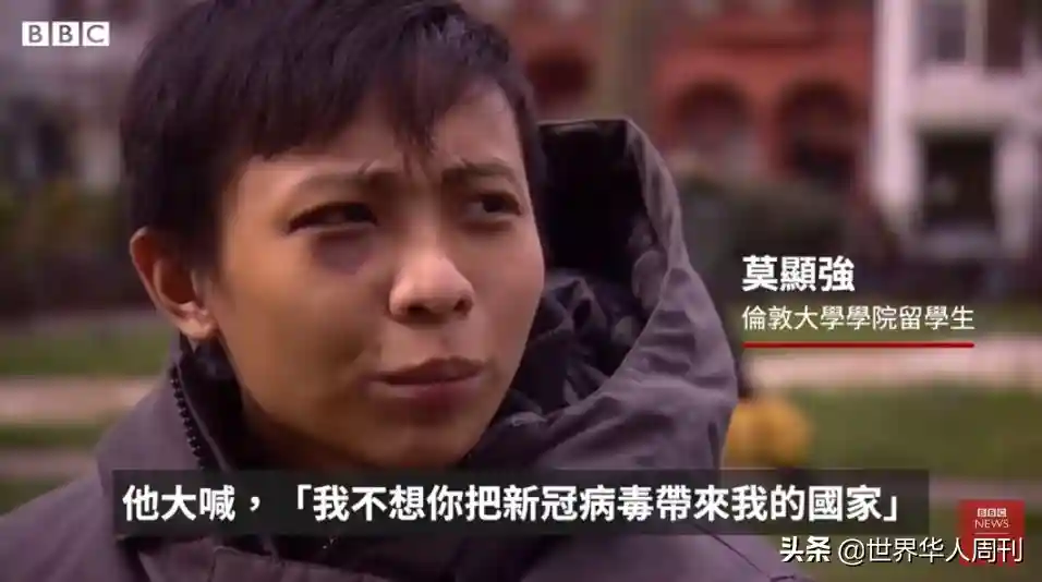 2月24日,新加坡留学生莫显强在英国伦敦街头被打,导致面部骨折,而袭击者在施暴中曾大喊“我不想你把新冠病毒带到我们国家”……