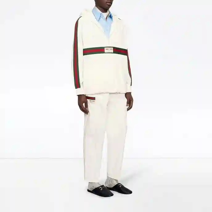 错过了TheNorthFace与Gucci的联乘?这件双方再度合作的风衣为实现再度入手的机会,米白色的设计配上Gucci的奢华细节。