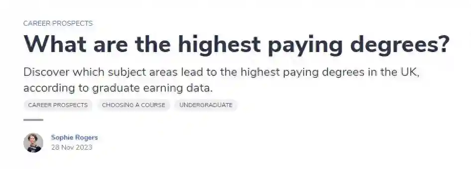 英国完全大学指南(CUG)最新公布了毕业生收入排名,12个专业被重点提及。下面学姐就给大家介绍下这些专业的薪酬情况,一起看看吧!