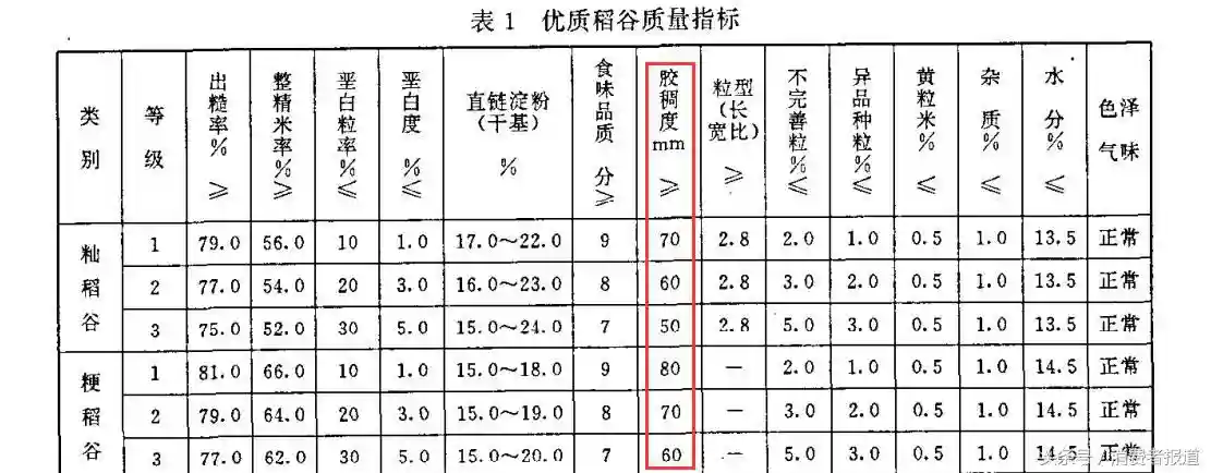 不信,你看国家标准GB/T17891-1999《优质稻谷》中对等级越高的大米要求胶稠度也越大。其中,一级优质籼稻谷≥70mm,一级优质粳稻谷≥80mm。