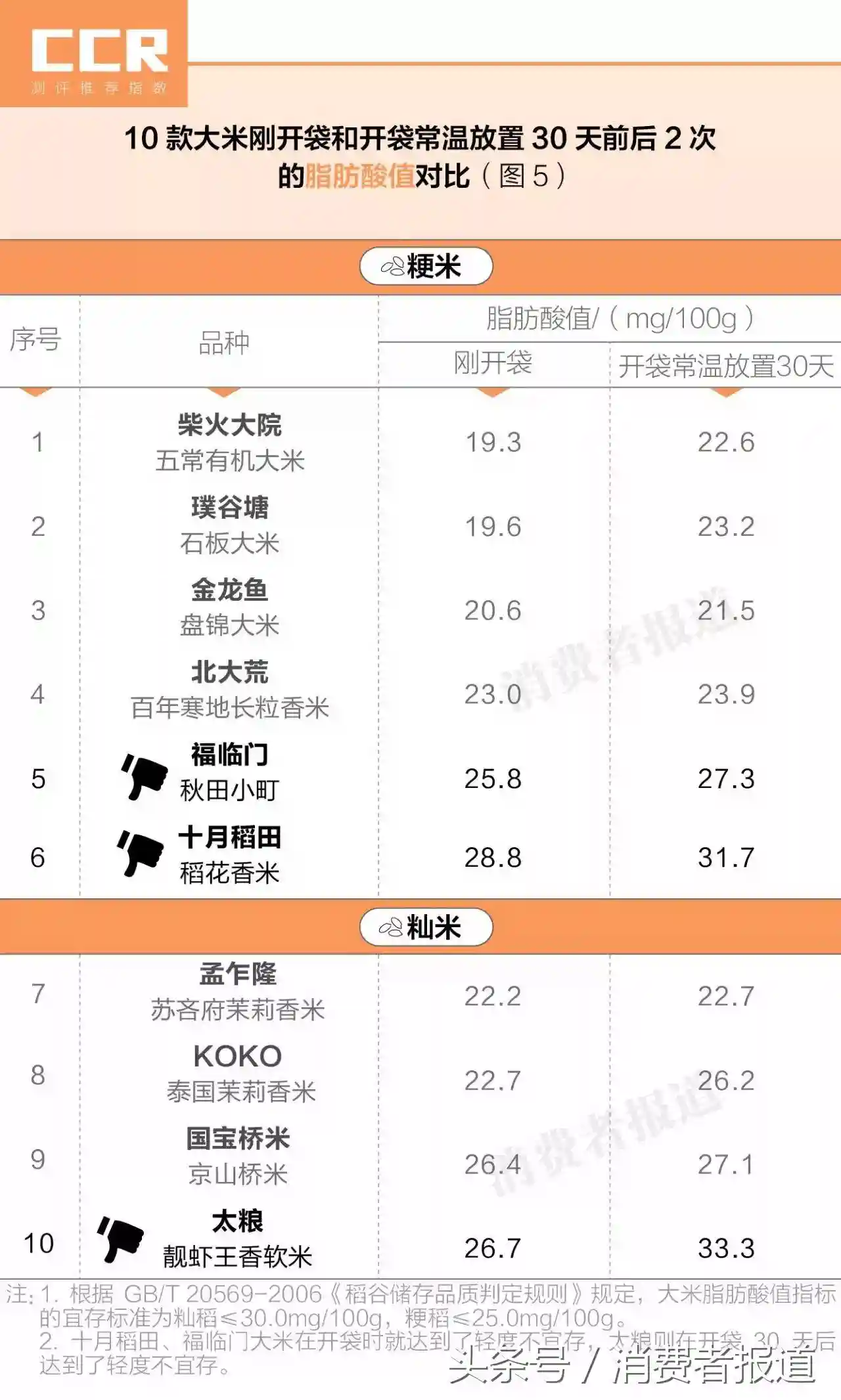 测试结果让消道长感到悲伤,刚开袋时,福临门、十月稻田这两款米已属于轻度不宜存,不新鲜了。