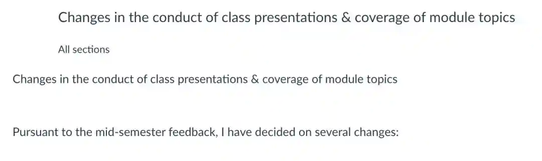 比如这是其中一位教授在期中考之后的feedbacksession听取了我们的意见之后对于教学方式进行的微调。