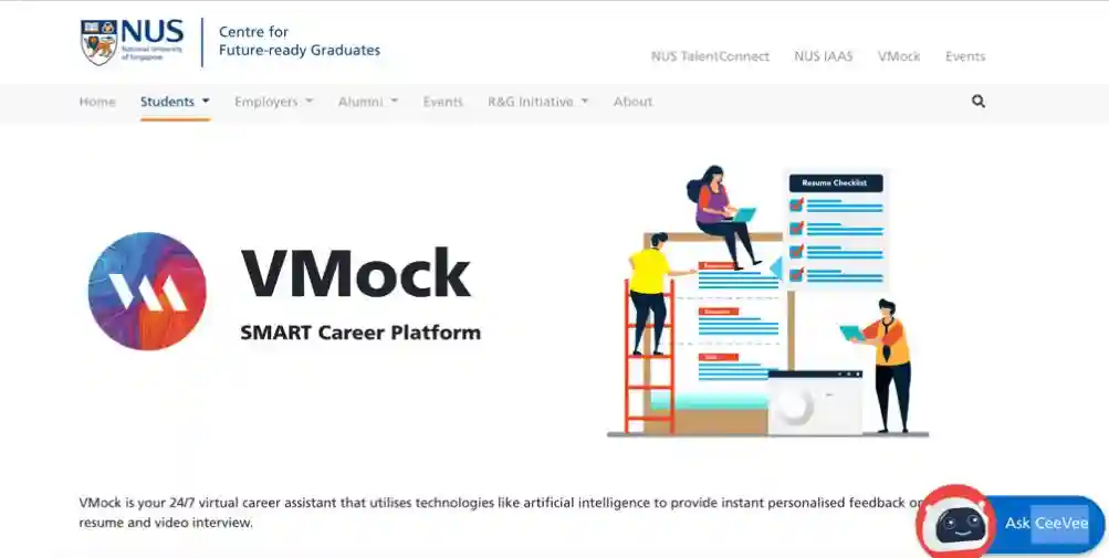 NUS还有专门的软件VMock,可以用于指导简历修改以及进行模拟面试。学校也常常通过邮件向我们推送各种招聘资讯。