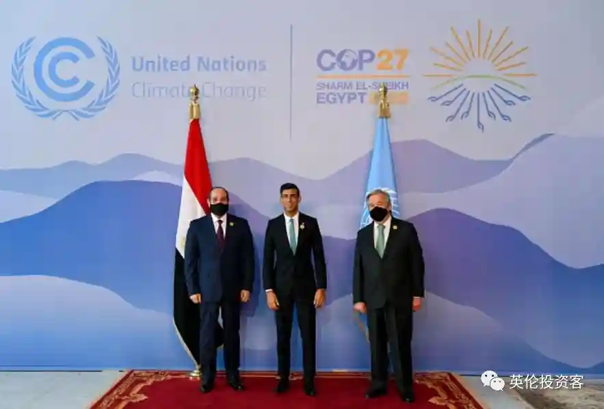 在2022年沙姆沙伊赫举行的Cop27峰会上,苏纳克首次出现在国际舞台上。