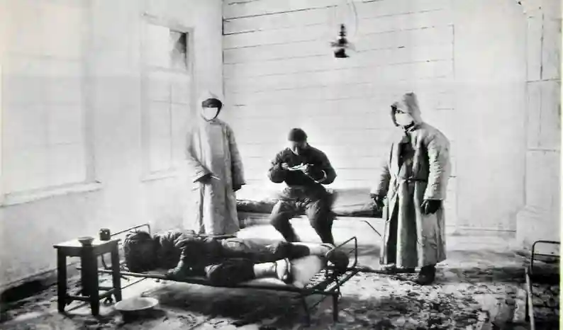1910年10月25日这一天,有两个卖皮毛的商人,从俄国来到满洲里,在一家小旅馆里留宿。当天晚上两人就发高烧、咳嗽,没过几天,他们就死了。之后,周围的旅客相继死亡,全身布满血斑,接着,哈尔滨出现了几千名同样症状的人。