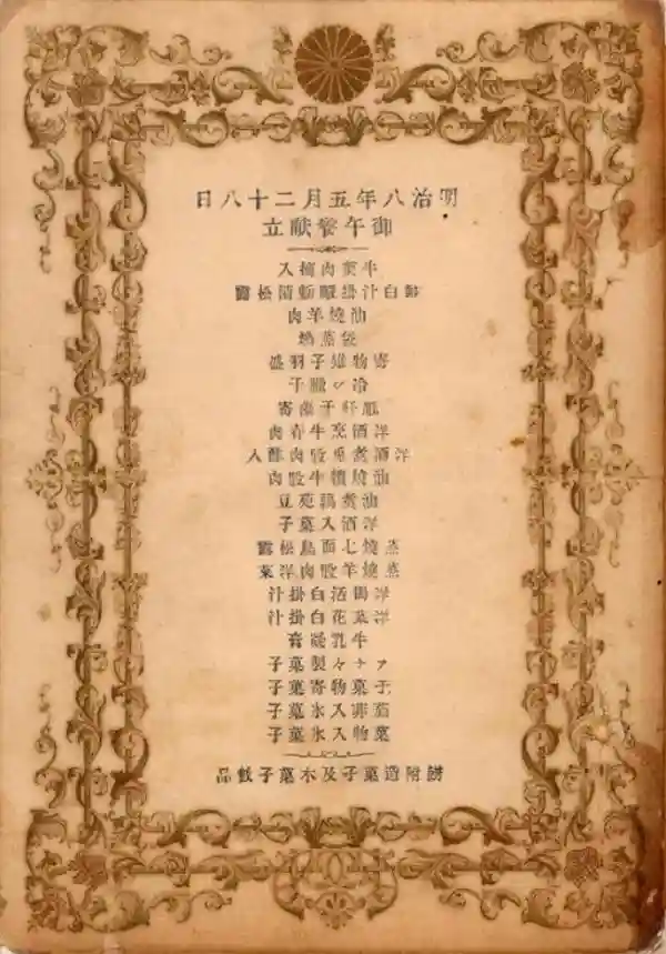 明治8年的宫中宴会菜单