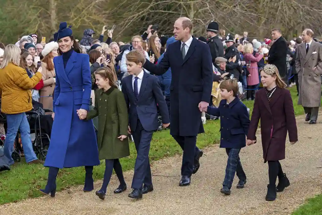 去年12月25日,威廉、凯特和孩子们参加圣诞节活动。(视觉中国)