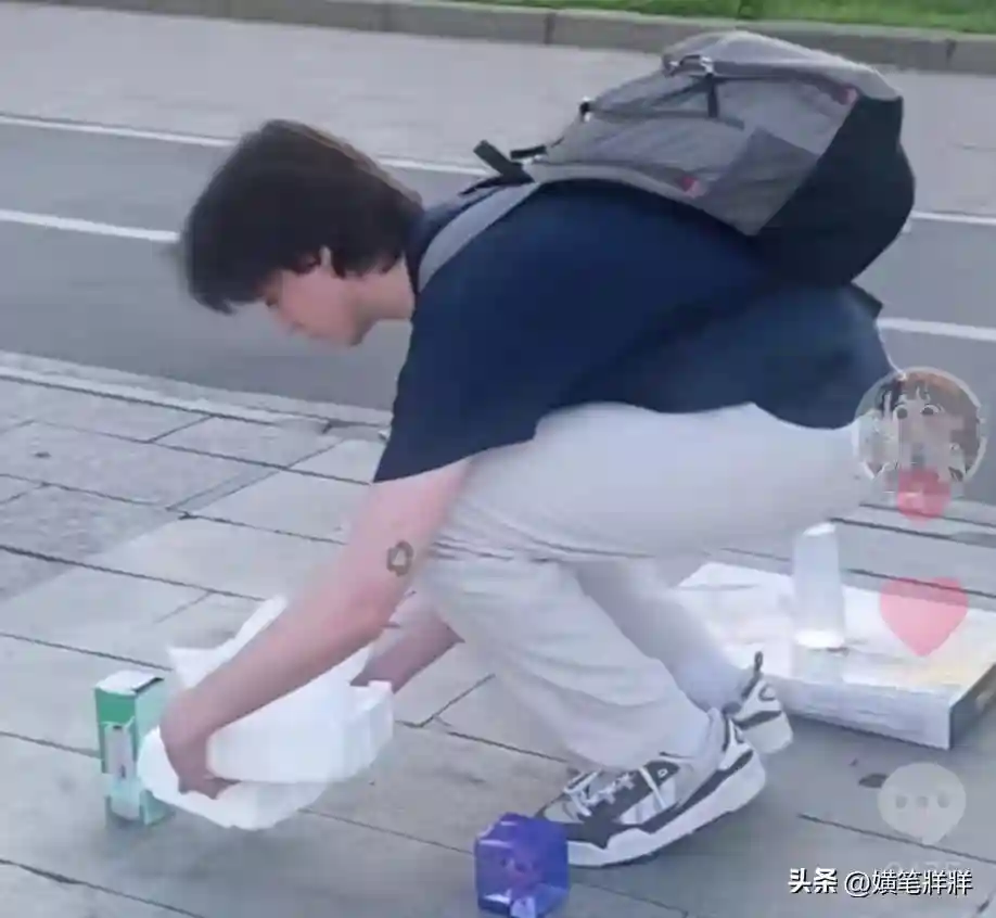 一开始这位大哥觉得,小伙这小摊子简直和白送没有什么区别,毕竟只需要套中矿泉水瓶就行,而且距离也着实不远,简直“易如反掌”。