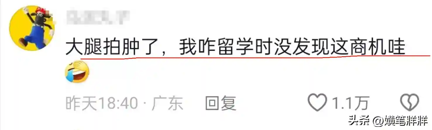 看到这一幕后,有已经留学归来的网友“大腿都拍肿了”,直呼自己当初咋没发现这商机。