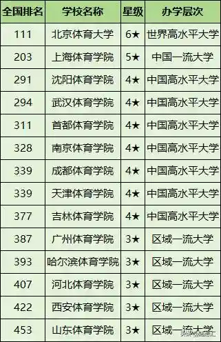 北京体育大学、上海体育学院、沈阳体育学院、武汉体育学院、首都体育学院。