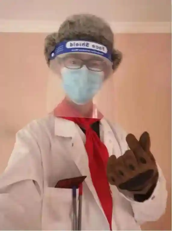 高中时,学校给每个学生发放了一件白大褂生物实验时穿,小家伙穿上后对着镜子左照又照臭美的不得了