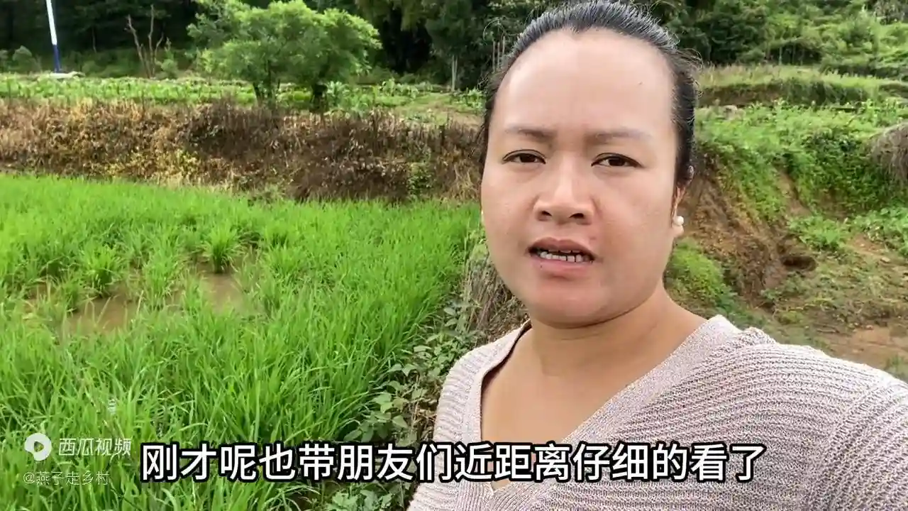 但是可以看到像江西采用人工式的插秧方法长得就是特别的茂盛,不管是高度还是长势,跟她这种采用的日本式的抛秧方法对比之后真的是天差地别。刚才也带朋友们近距离仔细的看了,日本美女采用的所谓的是抛秧方式,但是真的是不看不知道,一看吓一跳,没想到整块农田有特别多的地方都是没有秧苗的。像江西这边的大家都知道采用人工式的产秧方法,每亩稻舍产量最少有800-900斤的稻谷。