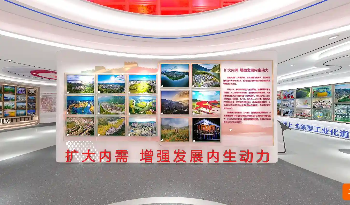 本次图片展经过数月的精心准备,运用了空间感、设计感、立体感、体验感更强的VR技术和虚3D技术搭建,将从万余幅图片中筛选出的550余幅精美图片分类纳入了“序言”“乘势而上走新型工业化道路”“扩大内需增强发展内生动力”“守正创新深化改革进行到底”“汇聚力量乡村振兴全面推进”“巩固拓展加速绿色低碳发展”“真抓实干绘民生幸福新图景”等七大板块中,全面反映近年来贵州经济社会发展取得的新突破、新成就。
