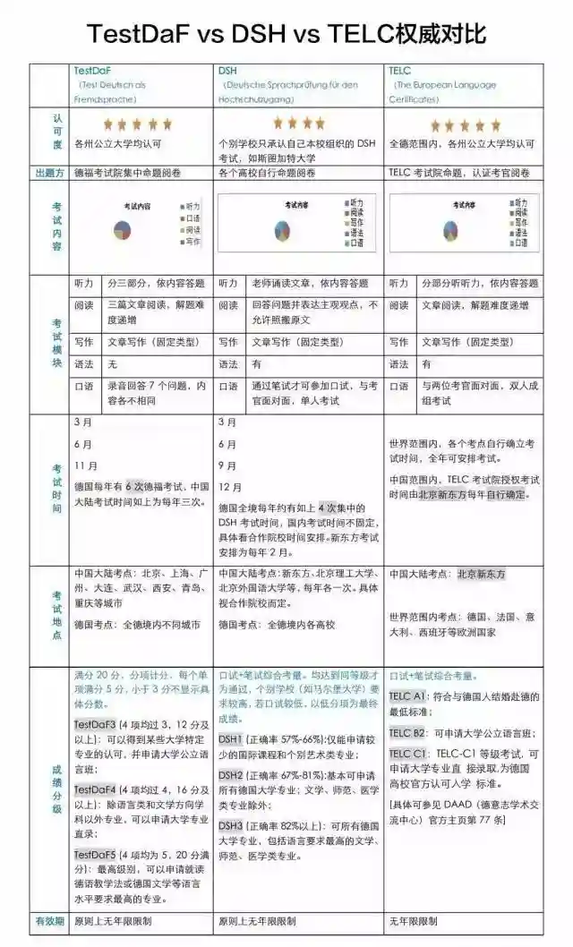 另外,DSH由于目前国内考点少,还有录取人数限制,所以没有德福普及,一般是去德国读语言班的同学的选择。