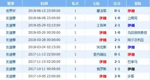 伊朗近期10场比赛战绩数据