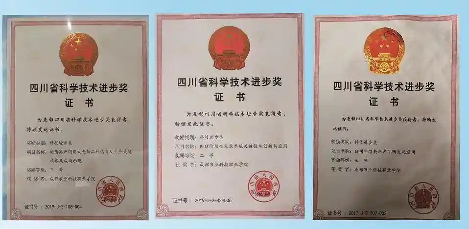 学校的各项专业基地与实践平台先后荣获,四川省科技进步奖二等奖2项、三等奖6项,全国农牧渔业丰收奖三等奖2项,重庆市科技进步奖二等奖1项,四川省社会科学优秀成果奖2项,遂宁市科技进步奖2项,选育玉米、苦瓜、大麦等新品种17个并获国家、省市审定(认定)证书,主持或参与制定四川省地方标准、职业技能标准、团体标准等8项,学校18名教师先后入选四川省“10+3”现代农业科技特派员、科技下乡万里行等社会服务团队,3位同志入选第十三批四川省学术和技术带头人后备人选。
