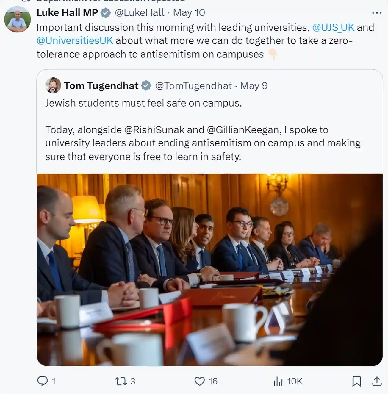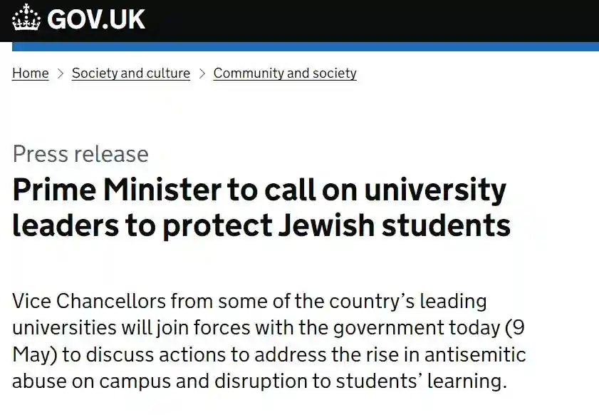 实际上,英国方面已经开始了专门保护犹太学生的活动。不久之前,英国召集了所有顶尖大学的副校长进行会议,宣布拨款700万英镑,以解决教育环境中的反犹太主义,其中50万英镑专门用于学校内的犹太牧师(犹太委员会成员)工作,并且为英国13个地区、100多所大学的8500名犹太学生提供支持。