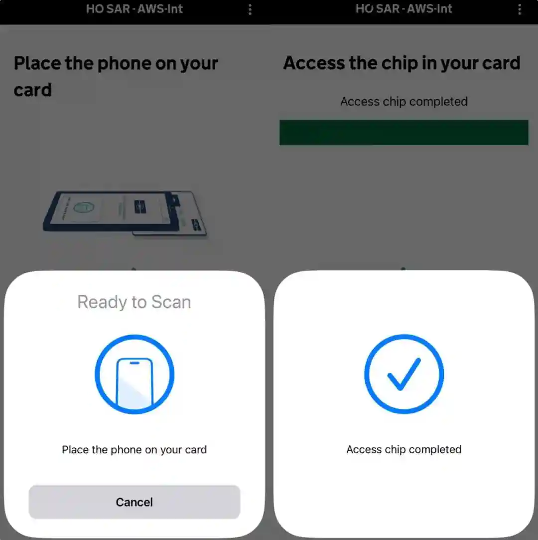通过验证码或扫描,将UKVI账户与手机APP关联起来