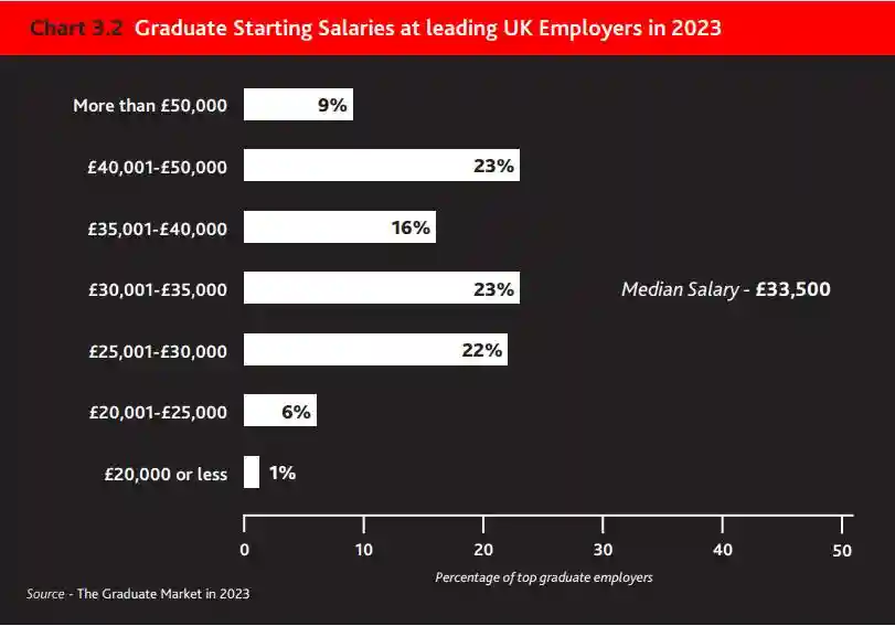 •英国顶尖毕业生雇主的毕业生起薪将在2023年连续第二年上涨,达到33500英镑的新中位数起薪。