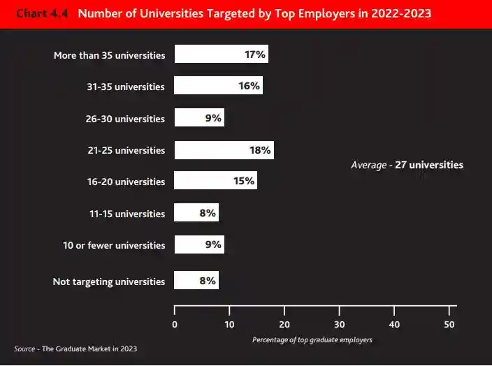 •在2022-2023年的招聘季,雇主已经增加了他们积极推毕业生空缺的大学数量,平均为27所大学。