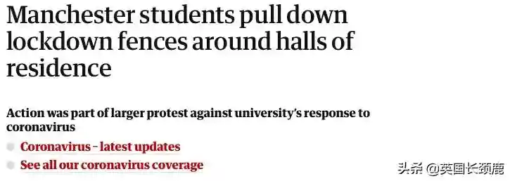 英格兰实施二次封锁的第一天,曼彻斯特大学的学生就因Fallowfield校区内竖起的“监狱式”围栏,爆发了暴力抗议。数百名学生聚集在一起举行抗议演讲,喷洒烟雾,并强制拆毁围栏。