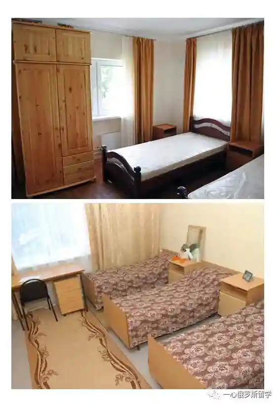 学校有新旧宿舍楼两栋宿舍,旧宿舍每个房间2-3个人,新宿舍每间2个人。配有公共卫生设施和厨房,24小时保安。