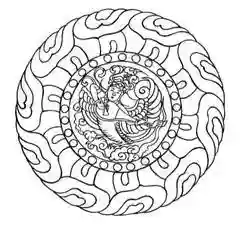 图一四中唐莫高窟第360窟主室藻井井心莲瓣圆盘中的迦陵频伽(线描图)