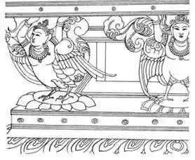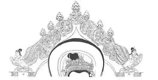 图一六b晚唐莫高窟第14窟北壁西起画金刚杵观音身后卷轴上侧横杆上的迦陵频伽(线描图)