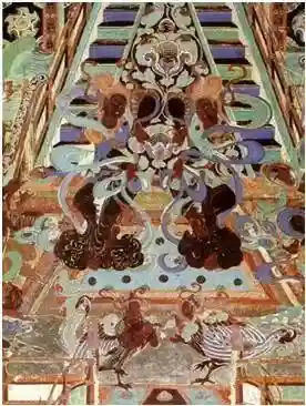 图一六a晚唐莫高窟第14窟北壁西起画金刚杵观音身后卷轴上侧横杆上的迦陵频伽