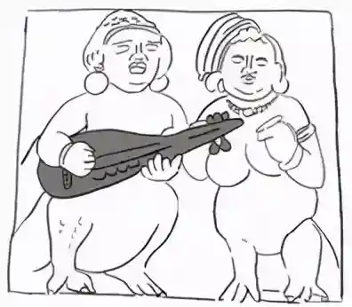 图一九笈多王朝(475年至500年间)阿旃陀第16窟前耳室壁画中的一对紧那罗(线描图)