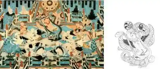 图四a隋莫高窟401窟藻井中的人首鸟身(线描图)
